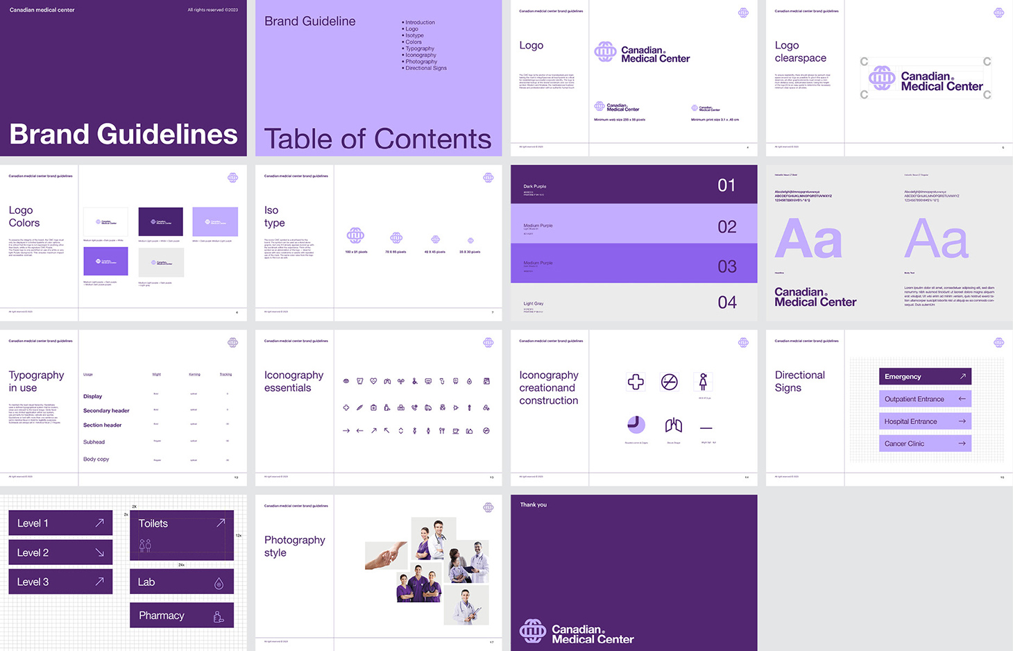 品牌标识也被创造了一个强烈的和谐的颜色和视觉元素,以及网格系统的使用,传达了病人护理中的组织精神和秩序,同时也展示了医生、护士和护理人员的工作团队的力量,以实现医院内最佳的治疗体验。